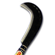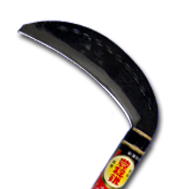 片刃木鎌は、良く切れるが両刃に比べて刃欠けしやすいので、木に刺さったまま横にひねったりしないで下さい。