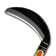 片刃木鎌は、良く切れるが両刃に比べて刃欠けしやすいので、木に刺さったまま横にひねったりしないで下さい。